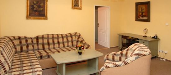 Hotel nabízí elegantně a prakticky zařízené pokoje, standartně vybavené TV se satelitním příjmem, radiem, wifi internetem, telefonem, sociálním zařízením (WC+sprcha). Apartmán je navíc vybaven minibarem a v koupelně vanou.